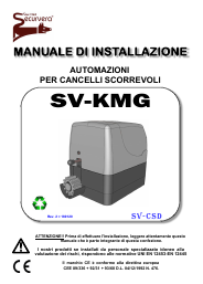 SV-KIU Kit automazione per cancello a 2 ante. Composto da: 2 motori INTERRATI con SBLOCCO a chiave, posto sul braccio, per cancelli ad anta da 0,80 a 2,5 metri, apertura totale del cancello 5 metri. Casse di fondazione in acciaio zincato. 1 centrale SV-CBR con frizione elettronica e ricevente radio 433,92 Mhz, in autoapprendimento. 2 radiocomandi codifica UM 86409 SV-ECO. 1 selettore SS-SC2 con 2 chiavi. 1 coppia di fotocellule SV-EVE. 1 Faro SV-FW7. Cartello monitore. Istruzioni. Alimentazione 220 V. 50 Hz. SV-KIV Kit automazione per cancello a 2 ante. Composto da: 2 motori INTERRATI con SBLOCCO. Apertura totale del cancello 5 mt. Alimentazione 24 Vcc. Alimentatore di lavoro e carica batteria 220 V. 50Hz. Le rimanenti caratteristiche sono come SV-KIU |